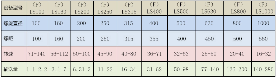 (F)LS系列螺旋輸送機(jī)主要技術(shù)參數(shù)表